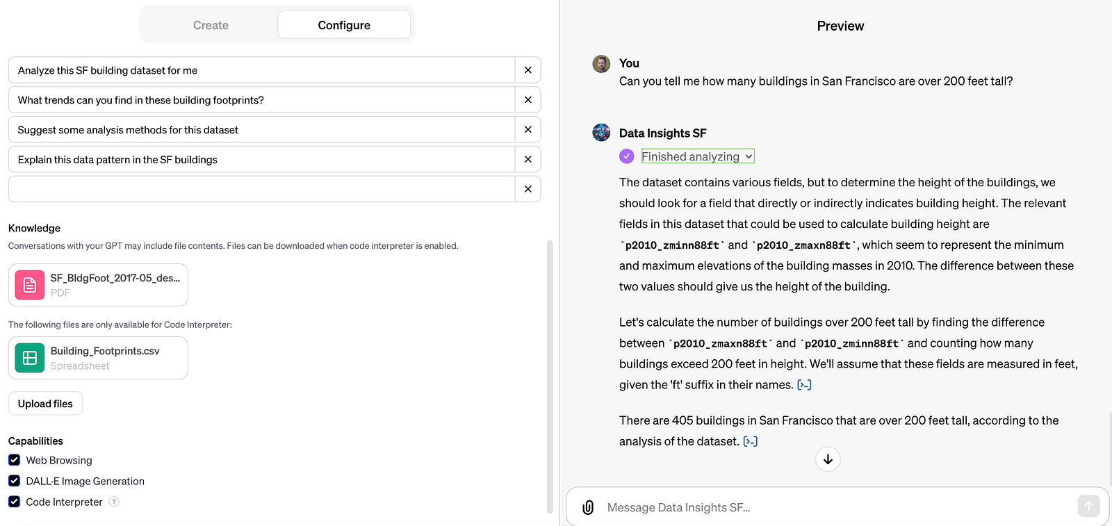 Thinking further, this approach would make it trivial to write a GPT that would work with any ‘building’ dataset, especially if the dataset used a data schema with well-defined fields.