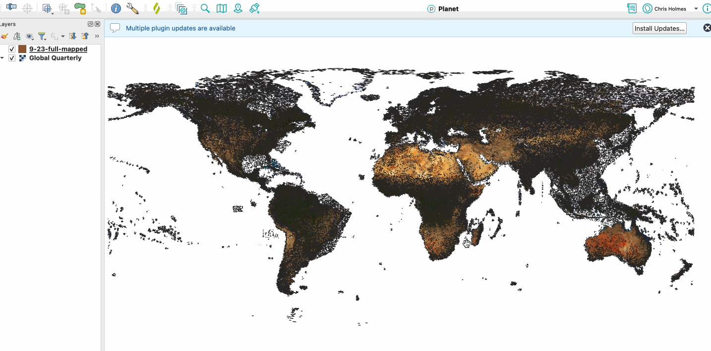 I recently got help on the DuckDB Spatial discussions for how to properly do this, so wanted to write that up for everyone. I’ve been processing Planet metadata that gets served from Planet’s Data API, working to try to make a STAC-GeoParquet version of it. The data is ordered by time, so when you load the full dataset it just fills in everywhere.